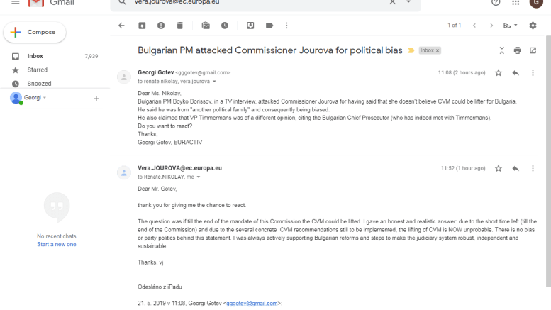 I learned about this interview by Borissov only today (I was in Central Asia last week). I sent an email to the chief of cabinet of Jourová, and one hour later, I got an answer from Jourová herself, which she wrote from her Ipad.