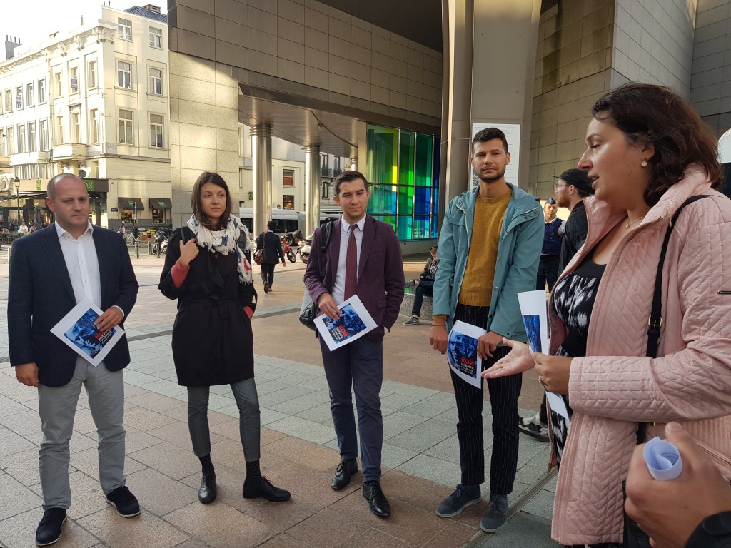 Simultaneously, another event was taking place just in front of the EP building: a group of Bulgarians living in Belgium protested against the nomination of Ivan Geshev as Chief Prosecutor General, in replacement of Sotir Tsatsarov. In Bulgaria, such protest are commonplace. NGOs including Boets, as well as political parties sometimes called “the urban Right” (of centre-right ideology, but opposed to Boyko Borissov’s GERB), are spearheading the effort to stop the appointment.